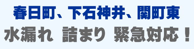 春日町、下石神井、関町東での水の困った即解決!急な水道トラブルに緊急でかけつけ訪問し、蛇口の水漏れ、トイレ詰まり、排水の溢れ、タンクの故障など修理いたします。